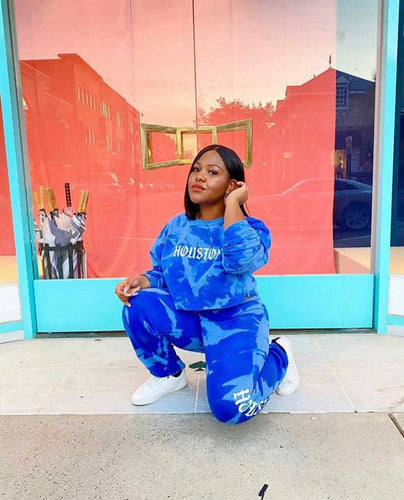 Blue Acid Wash Old London Houston Crewneck & Sweatpants Set